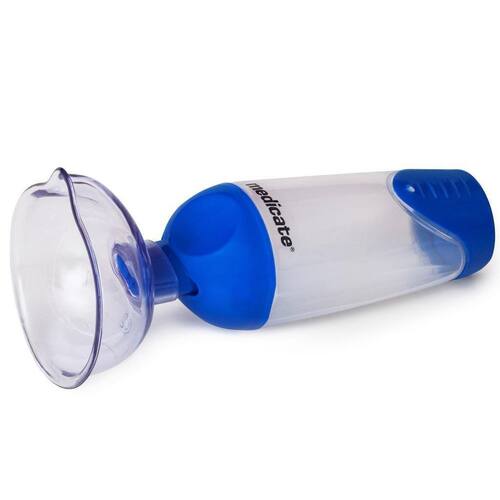 Espaçador Medicate Com Mascara Média adulto/infantil O Espaçador valvulado Medicate é um produto desenvolvido com design e tecnologia avançada para aumentar a eficácia dos medicamentos para asma e bronquite. Sua principal função é fazer com que somente a substância ativa chegue até os pulmões, retendo o propelente no interior do espaçador, além de melhor coordenar a inspiração do . Compatível com a maioria dos medicamentos disponíveis no mercado. Este equipamento é de uso individual. Ean: 7898157301179