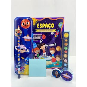 Com o kit "Diversão na Escola Espaço", sua jornada escolar será uma aventura intergaláctica! Este conjunto vem com um livro para colorir, um estojo espaçoso para manter tudo organizado, uma régua, um, uma borracha para apagar até mesmo os erros mais cósmicos e um apontador para manter suas ideias sempre afiadas como um cometa. Prepare-se para despertar sua criatividade e explorar novos horizontes a cada dia!