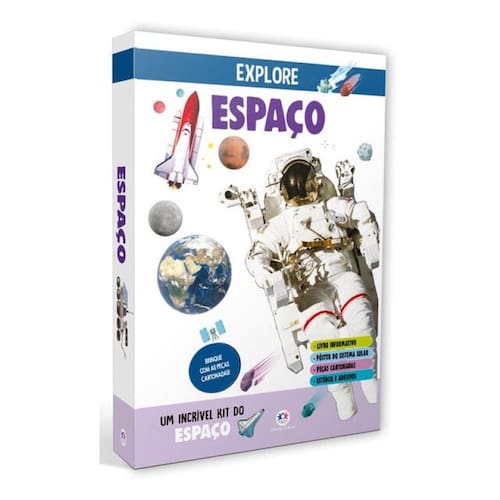 Venha explorar o mágico, infinitoe misterioso espaço sideral comeste fantástico kit, que vem com livro pôster, estêncil e peças 3D para montar. Você vai aprender sobre corpos celestes, comoplanetas, estrelas, luas, galáxias e muito mais desse incrível Universo!