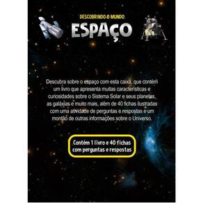 Descubra mais sobre o espaço com esta caixa, que contém um livro que apresenta muitas características e curiosidades sobre o Sistema Solar e seus planetas, as galáxias e muito mais, além de 40 fichas ilustradas com uma atividade de perguntas e respostas e um montão de outras informações sobre o Universo.
