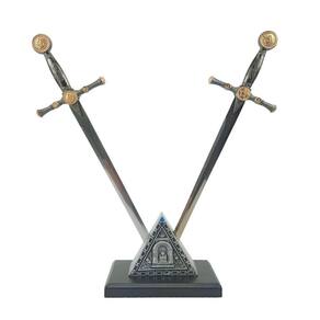 Este linda espada maçônica decorativa, contem duas espadas e um suporte de mesa feito em madeira, não perca a oportunidade de levar esse lindo produto para casa.