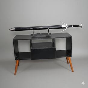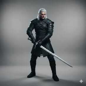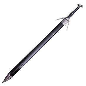 Espada decorativa inspirada na Espada de Prata utilizada por Geralt de Rívia no universo de The Witcher. A peça apresenta design marcante com elementos que remetem ao estilo medieval sombrio da saga.