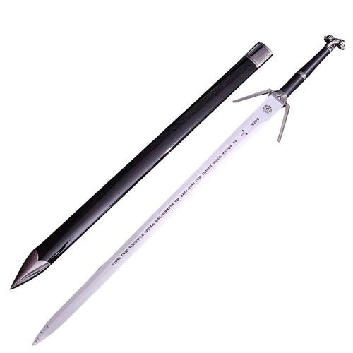 Espada decorativa inspirada na Espada de Prata utilizada por Geralt de Rívia no universo de The Witcher. A peça apresenta design marcante com elementos que remetem ao estilo medieval sombrio da saga.