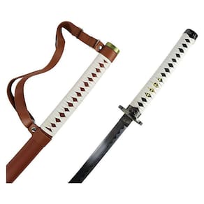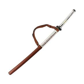 Esta linda katana e revestida de couro com detalhes em tecido branco lamina de aço sem corte.