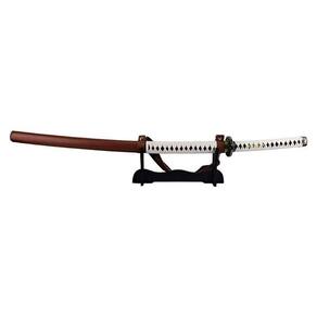 Esta linda katana e revestida de couro com detalhes em tecido branco lamina de aço sem corte.
