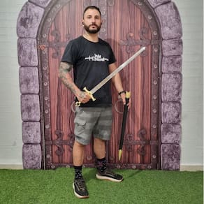 Espada Rei Davi e Salomão Templária com Bainha de Couro Espada Medieval Rei Davi e Salomão Cromada com símbolos Espada Templária Rei Davi e Salomão Vermelha e Dourada Espada Cerimonial Rei Davi e Salomão com Lâmina Decorada Espada Rei Davi e Salomão com Detalhes Dourados Espada Medieval Rei Davi e Salomão em Aço Cromado Espada Templária Rei Davi com Bainha de Couro Decorativa Marca: Tenda Medieval