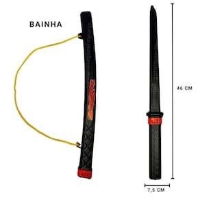 Espada Samurai De Brinquedo Ninja Guerreiro Com Bainha 46cm A espada de brinquedo vai garantir a diversão de seu filho, além de ajudar na imaginação e desenvolvimento da coordenação motora brincando.