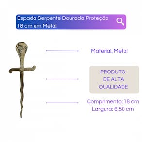 Espada Serpente Dourada Proteção 18 cm em Metal