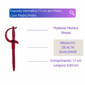 Espada Vermelha 17 cm em Metal Com Pedra Preta