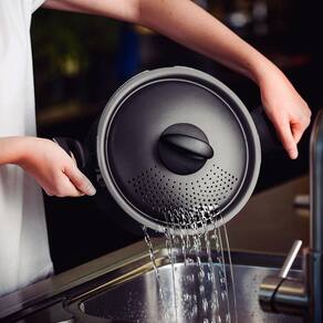 Muito importante:-- conferir produtos no ato do recebimento. Não aceitar produtos com embalagem violada amassado, rasgado, aberto, quebrado, etc , a recusa deve ser feita no ato.Espagueteira alumínio loreto antiaderente 22 cm 5,7l grafite - tramontina 20388022Para fazer uma massa deliciosa para o almoço da sua família e de receita tradicional, a espagueteira tramontina loreto em alumínio com revestimento interno e externo em antiaderente starflon max grafite 22 centímetros de diâmetro 5,7 litros é indispensável. Desenvolvida com corpo de espessura de 1,6 milímetros em alumínio e revestimento interno e externo de antiaderente starflon max, ela cozinha diferentes tipos de massa de maneira rápida e uniforme, sem que elas grudem em sua superfície. Sua tampa em alumínio possui furos escorredores e trava, o que garante maior praticidade na hora de tirar a água do alimentos. Suas alças são em baquelite antitérmico e seu pegador em nylon, ambos materiais que oferecem maior segurança durante o manuseio, pois não aquecem. - a capacidade volumétrica máxima para cozimento é de 3/4 da capacidade total da peça.- seu utensílio starflon está pronto para uso com ou sem gordura, sempre em fogo baixo ou médio nunca superior a 260 c .- produto com certificação compulsória certificada pelo sgs 0040, registro 001777/2018, modelo espagueteira e classificação de antiaderência a ótima , conforme portaria inmetro 419/2012.Especificações técnicas:- capacidade: 5,7l.- altura com tampa: 21cm a x 34cm l x 24,5cm p.- altura sem tampa: 15,5cm a x 34cm l x 24cm p.- tamanho da embalagem: 18cm a x 33cm l x 25cm p.- peso líquido: 850g.- peso bruto: 1,1kg.