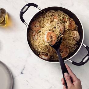 Penne, espaguete ou fettuccine. Suas receitas ficam ainda mais deliciosas se forem servidas com o pegador de massa Tramontina Ability em nylon preto. Ele é produzido em nylon, é resistente a temperaturas de até 180 graus e é ideal para ser utilizado em superfícies antiaderentes e cerâmicas, pois não as danifica. Prático e fácil de limpar, ele ainda pode ser lavado na máquina de lavar louças. A escolha perfeita para garantir facilidade na hora de servir ou preparar suas refeições!