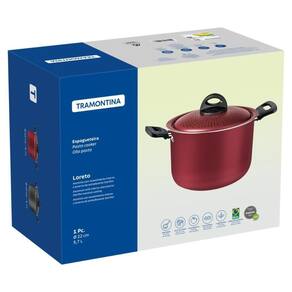 Para fazer uma massa deliciosa para o almoço da sua família e de receita tradicional, a espagueteira Tramontina Loreto em alumínio com revestimento interno e externo em antiaderente Starflon Max grafite 22 centímetros de diâmetro 5,7 litros é indispensável. Desenvolvida com corpo de espessura de 1,6 milímetros em alumínio e revestimento interno e externo de antiaderente Starflon Max, ela cozinha diferentes tipos de masssa de maneira rápida e uniforme, sem que elas grudem em sua superfície. Sua tampa em alumínio possui furos escorredores e trava, o que garante maior praticidade na hora de tirar a água do alimentos. Suas alças são em baquelite antitérmico e seu pegador em nylon, ambos materiais que oferecem maior durante o manuseio, pois não aquecem. Além de todas essas características, a espagueteira pode ir à máquina de lavar louças, facilitando seu dia a dia na cozinha!