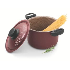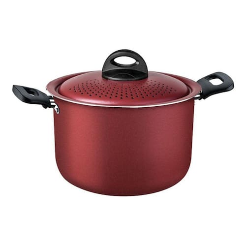 A Espagueteira Tramontina Loreto em Alumínio com Revestimento Interno Antiaderente Starflon T1 Vermelha 22 cm de diâmetro 5,7 L vai tornar o preparo do seu macarrão muito mais prático. Ela é produzida em alumínio com revestimento interno e externo em antiaderente Starflon T1, com a tecnologia T, o que garante à peça maior poder de antiaderência, maior resistência à abrasão, maior durabilidade e maior facilidade na limpeza. Com ela você irá preparar massas de forma muito mais fácil e rápida, pois permite que a água escorra, dispensando o uso do escorredor. Ela vem na moderna cor vermelha e possui alças de baquelite antitérmico e pegador de nylon que proporcionam maior segurança durante o manuseio.