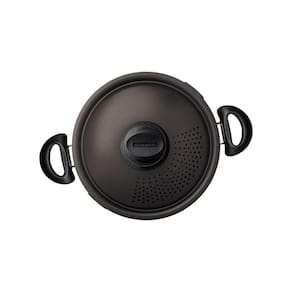 - Tampa para espagueteira de alumínio com furos escorredores e trava;