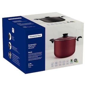 Carbonara, ao sugo ou ao pesto, seja qual for o sabor, seu macarrão precisa ser preparado na espagueteira Tramontina Paris em alumínio com revestimento interno e externo em antiaderente Starflon Max com tampa de alumínio chumbo 24 centímetros 7,3 litros. Produzida em alumínio com espessura de 1,8 milímetros e revestimento interno e externo de antiaderente Starflon Max, ambas características que proporcionam um cozimento rápido e uniforme dos alimentos, evitam que eles grudem em sua superfície, e devido a isso, a tornam também muito mais fácil de limpar. Sua tampa é em alumínio com furos escorredores, trava antigiro e saída de vapor, que facilitam o preparo de massas e o escoamento da água. Suas alças são em baquelite antitérmico e o pegador em nylon, não aquecem e proporcionam um manuseio muito mais e confortável. Além de todas essas características, a espagueteira ainda pode ser levada à máquina de lavar louças, otimizando seu dia a dia na cozinha!