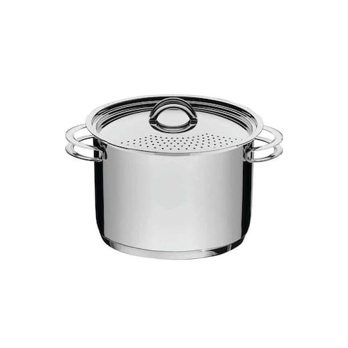 Fazer macarrão já é fácil, mas com a Espagueteira Tramontina em Aço Inox Fundo Triplo com Tampa e Alças 24 cm de diâmetro 7,7 L fica ainda mais fácil. Ela acompanha tampa com encaixe e furos para escorrer a água da massa, ou seja, você não irá precisar se preocupar com a tampa na hora de escorrer, já que ela pode ser fixada na panela. Além disso, seu brilho traz toda a elegância do aço inox, tornando a sua cozinha em um espaço ainda mais moderno. Um clássico da Tramontina, a Solar é símbolo de durabilidade e praticidade. Totalmente feita de aço inox, por isso não solta nenhum resíduo nos alimentos, mantendo-os saudáveis. Altamente durável, mantém as características originais, preservando a beleza, a higiene e a durabilidade do material. O fundo triplo (aço inox + alumínio + aço inox) distribui o calor uniformemente, proporcionando um cozimento mais rápido e uniforme, economizando energia e deixando os alimentos aquecidos por mais tempo. Possui design diferenciado e moderno, com acabamento em alto brilho. Tampa com encaixe perfeito e furos na mesma para escorrer a água da massa. Para fechar a tampa da espagueteira Solar posicione as 4 garras sobre os encaixes e gire a tampa até que a parte dos furos fique ao lado oposto das alças. Para escorrera água da massa, segure a panela pelas alças e vire-a. Pode ser lavada diariamente na máquina de lavar louças.Pode ser utilizada nos fogões: elétrico, gás, indução e vitrocerâmico. Observações A capacidade volumétrica máxima para cozimento é de 3/4 da capacidade total da peça.Antes do uso, remova as eventuais etiquetas presentes no produto, e em seguida recomendamos lavar. Use uma fonte de calor sempre baixa, para evitar que o alimento grude no fundo da panela. O fundo triplo distribui uniformemente o calor, não sendo necessário o fogo alto. E, além disso, você economiza energia. Quando a panela for utilizada no fogão a gás, a chama não deve ultrapassar a base da panela. No caso de uso de chapa elétrica, a chapa deverá ter diâmetro igual ou inferior ao da panela. Não aqueça o alimento colocando uma panela ou qualquer utensílio do mesmo diâmetro um sobre o outro. Esse procedimento é perigoso, pois cria vácuo e impossibilita a retirada. Não deixe a panela vazia sobre uma fonte de calor. Sempre dissolva o sal em água fervendo ou com os alimentos, mexendo os ingredientes no início do cozimento. Alguns alimentos que possuem amido, como massa e arroz, poderão deixar manchas na parte interna da panela durante o cozimento. Para remover facilmente as manchas, passe um pano umedecido com suco de limão ou vinagre, ou use a pasta Tramontina para polir e remover manchas. Evite deixar alimento na panela por muito tempo; o sal também pode provocar manchas e corrosão. Para que a panela de aço inox fique sempre bonita e com brilho, recomendamos que seja lavada somente com detergente neutro e esponja. Além disso, nas partes foscas da panela pode-se utilizar o lado mais abrasivo da esponja com saponáceo líquido, para remover as manchas mais difíceis. Depois da lavagem, sempre que possível, enxágue a panela com água quente e seque-a imediatamente, para que ela mantenha o brilho original, pois o cloro e as substâncias contidas na água podem deixar manchas na panela. Nas panelas/tampas cujo sistema de fixação utiliza parafuso, com o tempo de uso, ele poderá afrouxar-se. Recomenda-se, por segurança, o reaperto. Pode ir ao forno em temperatura máxima de 260°C, podendo haver mudança na coloração. As alças, pegadores e cabos aquecem durante o cozimento. Aconselhamos o uso de luvas ou pano no manuseio. É necessário cuidado ao manusear o produto, principalmente com alimentos ou líquidos quentes. Para sua segurança, utilize somente até a capacidade máxima indicada no fundo do produto. Características Gerais EAN13 7891116043042 DUN14 17891116043049 NCM 7323.93.00 Peso Líquido 2,3350 kg. Peso Bruto 2,6500 kg. Metragem 0,015290 m³. Dimensões Embalagem (Compr. X Larg. X Alt.) 278x 275x 200 mm. Dimensões Produto (Compr. X Larg. X Alt.) 332x 268x 216 mm. Diâmetro 24,0 cm. Capacidade 7,70 l. Espessura 0,7 mm.