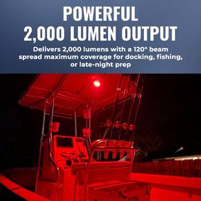 - Potente saída de 2.000 lúmens – ilumine grandes áreas sem esforço com uma propagação de feixe ultra brilhante de 120°, tornando a docagem noturna, a pesca e o trabalho no deck mais seguros e eficientes.