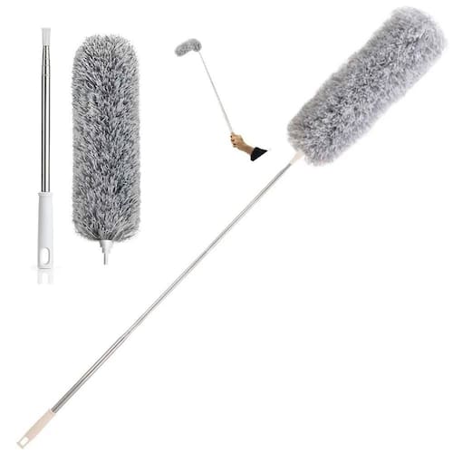 Limpeza prática, rápida e sem esforço! Com alcance de até 2 metros e 80cm, este espanador eletrostático é ideal para alcançar locais altos e difíceis, como ventiladores de teto, cantos, cortinas e móveis altos. Suas cerdas de microfibra são macias, laváveis e atraem a poeira com facilidade, sem riscar superfícies delicadas.