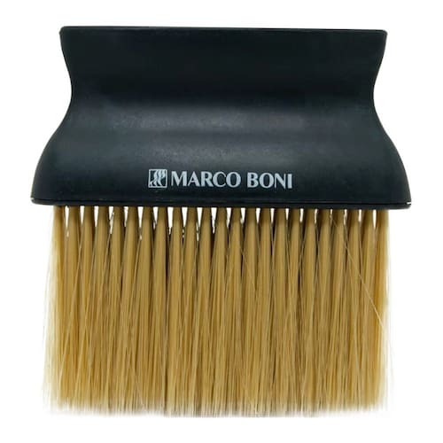 Possui formato anatômico diferenciado e é ideal para espanar resíduos do rosto, ao redor das orelhas, linhas do pescoço e nuca. Ideal para remover excesso de resíduos