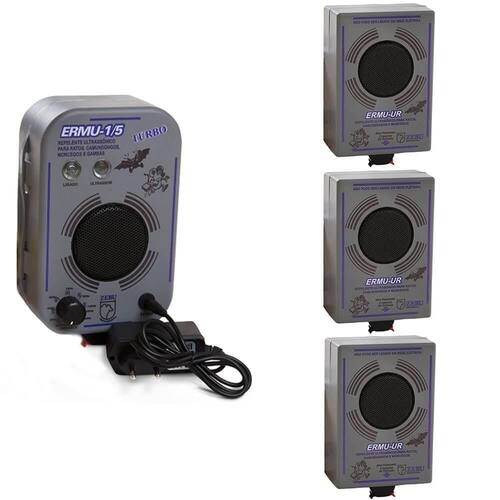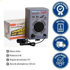 Espanta Rato E Morcego E 3 Unidade Remota Zebu Ermu 1/5 Turbo 10782-10790x3 - Proteja seu espaço de forma eficaz, prática e segura! - Este conjunto combina o espanta rato e morcego ERMU-1/5 Turbo com três unidades remotas UR-1079, ampliando a cobertura de até 450 m. - Com tecnologia ultrassônica confiável, você mantém sua casa, sítio ou empresa livre de roedores e morcegos sem contato químico. - Invista na tranquilidade e segurança que só a Zebu oferece! CONJUNTO COMPOSTO POR: 1 UN - ESPANTA RATO E MORCEGO ERMU-1/5 -1078 3 UN - UNIDADE REMOTA ESPANTA RATO E MORCEGO UR-1079