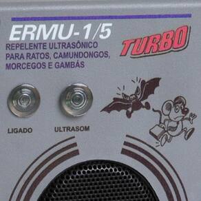 DESCRIÇÃO - Alimentação: Fonte 90 /240 Vca (automático). - Potência: 12 W. - Consumo de Energia: 0,12 kWh/dia. - Área de abrangência: 150 m2. - Ângulo de emissão: 75. - Frequência: 3 a 55 kHz. - Capacidade para ligar mais 5 emissores. - Efeito positivo a partir da 2 semana de uso. - Repelente ultrassônico para ratos, camundongos, gambás e morcegos. - Regulagem de frequência manual.