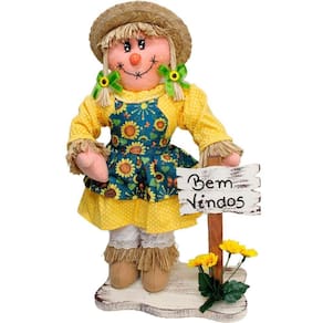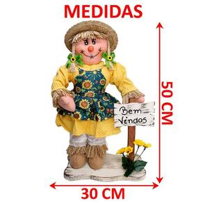 Transforme sua Festa Junina com charme e alegria com esse espantalho caipira decorativo de 50cm! Ideal para enfeitar mesas, entradas, painéis e criar aquele clima típico do arraiá!