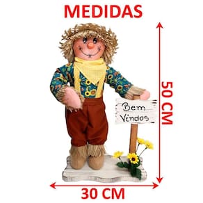 Transforme sua Festa Junina com charme e alegria com esse espantalho caipira decorativo de 50cm! Ideal para enfeitar mesas, entradas, painéis e criar aquele clima típico do arraiá!