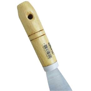 Espatula aço cabo madeira 04cm compel 0.2601indicação:especialmente projetada para preparações de repintura e raspagens em geral.Retoque de argamassa e massa fina.Utilizada também para a aplicação de gesso e no manuseio dos mais diversos produtos como argamassas, massa fina, massa corrida, colas, resinas.Informações adicionais:tamanho ideal para uso em superfícies pequenas.Fabricada com lâmina de aço temperado e galvanizado.Descrição do produto:espátula de aço n 04 / cabo de madeira tratada com design anatômico.Medida 04 cm.Marca: compel12