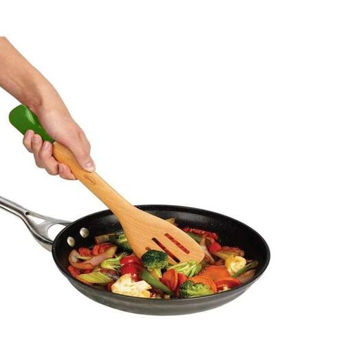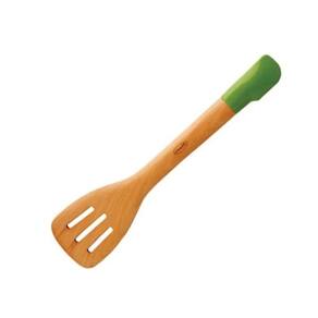 Espátula vazada da Chef'n possui ponta dupla é feita de bambu natural que não agride o meio ambiente.