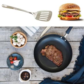 Espátula colher vazada inox 33cm gourmet premium cozinha Espatula de metal vazada para fritura em frigideira 33cm Deixe sua cozinha ainda mais completa e funcional na hora de cozinhar. Com design moderno e tradicional a espatula é feita em metal com sua base vazada é ideal para mexer alimentos, auxilia em frituras no preparo de ovos, panquecas, torradas, bolos ou até mesmo para se servir. Ideal também para levar alimentos quentes ou frios de um recepiente para o outro ajudando também a evitar que arranhe sua panela.