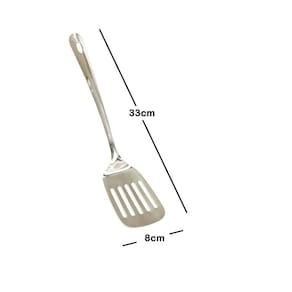 Espátula colher vazada inox 33cm gourmet premium cozinha Espatula de metal vazada para fritura em frigideira 33cm Deixe sua cozinha ainda mais completa e funcional na hora de cozinhar. Com design moderno e tradicional a espatula é feita em metal com sua base vazada é ideal para mexer alimentos, auxilia em frituras no preparo de ovos, panquecas, torradas, bolos ou até mesmo para se servir. Ideal também para levar alimentos quentes ou frios de um recepiente para o outro ajudando também a evitar que arranhe sua panela.