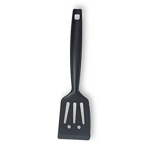 Produzida em nylon resistente, suporta temperaturas de até 120C e é indicada para uso em diferentes tipos de receitas. A serrilha integrada é um diferencial: permite cortar alimentos mais macios diretamente na panela ou frigideira, trazendo agilidade sem precisar trocar de utensílio. Além disso, o modelo pode ser pendurado, ajudando a manter a cozinha organizada e o utensílio sempre à mão.