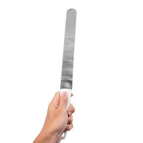 Modelo: Espátula Inox De Confeiteiro Material: Aço Inoxidável, Plástico Resistente Dimensões: 40cm Comprimento X 4cm Largura Peso: 100g