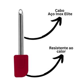Produzida em silicone premium resistente ao calor, é totalmente segura para uso em panelas antiaderentes, cerâmica e teflon, pois não risca nem danifica o revestimento. O cabo em aço inox Elite garante maior durabilidade, firmeza e conforto durante o uso.