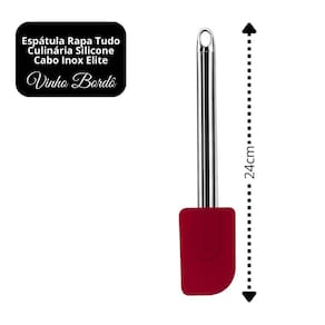 A Espátula Culinária Rapa Tudo em Silicone Premium Bordô com Cabo em Aço Inox Elite é o utensílio ideal para quem busca precisão, praticidade e acabamento sofisticado na cozinha. Seu tamanho compacto facilita o manuseio em preparos delicados, como omeletes, panquecas, molhos, sobremesas e pequenas porções.