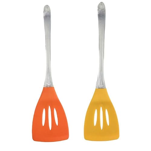 O kit contém 2 espatulas. Feito em material de silicone e acrílico. Além de funcional, você vai querer para decorar a sua cozinha e deixar ainda mais bonita.