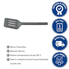 DESCRIÇÃO DA ESPÁTULA DE SILICONE - Para deixar sua cozinha muito mais prática e moderna, a espátula de silicone perfurada Tramontina Moldê cinza é a escolha perfeita! - Ela lhe proporciona flexibilidade, resistência e é a escolha perfeita para utilização em suas panelas, caçarolas e frigideiras com revestimento antiaderente ou cerâmico, pois não os danifica. - Ela resiste a temperaturas de até 180 C e pode ser levada à máquina de lavar louças, otimizando suas tarefas na cozinha. Sem dúvida, um utensílio indispensável para completar sua cozinha!