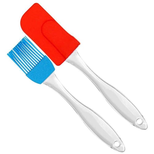 Espátula E Pincel De Silicone Conjunto composto por espátula e pincel de cozinha feita de Polimero de silicone. Conjunto com duas peças, sendo: Uma espátula com parte funcional em polímero de silicone, colorido, cabo monobloco em plástico. Prepare as mais deliciosas refeições em sua cozinha com estilo e qualidade. Ideal para preparar e misturar alimentos. Pincele e unte formas de forma prática e higiênica. Pode ser utilizado em superfícies antiaderente. Possui cabo com furo passante, que permite que o utensílio seja pendurado. Suporta temperaturas de até 200ºC.