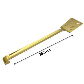 A espátula em inox dourada cozinha fritura vazada fineza irá agregar elegância no momento de servir O item é produzido em aço inox de alto padrão. O dourado das peças fineza não são pinturas e sim são adquiridos através de uma nova tecnologia chamada de pvd deposição física de vapor onde o nitreto de titânio adere no inox, dando o tom dourado nas peças. No brasil. Portanto, os produtos fineza são produtos de qualidades únicas e exclusivas, pois o dourado aumenta a durabilidade do inox evitando mais ainda o enferrujamento e desgaste das peças. O dourado não sai e não descasca com o passar do tempo desde que as recomendações abaixo sejam seguidas Contém: 1 espátula em inox dourada cozinha fritura vazada fineza 38,5cm x 6,5cm x 1mm