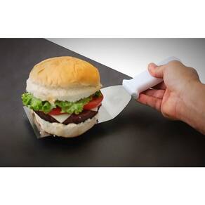 Espatula para lanche curva, o jeito mais prático de preparar lanches, virar massas e fritar ovos.Com seu formato curvo fica mais seguro o preparo da refeição, sua mão ficará mais protegida, contra riscos de queimaduras.Modelo Espatula CurvaMaterial do cabo PlásticoMaterial da ponta Aço inoxidávelComprimento total 26 cmÉ kit NãoLamina cortante fabricada em aço inox.Cabo fabricado em Polipropileno.Medidas; 26cm x 8cmIdeal para preparar lanches, fritar ovos, e virar massas.