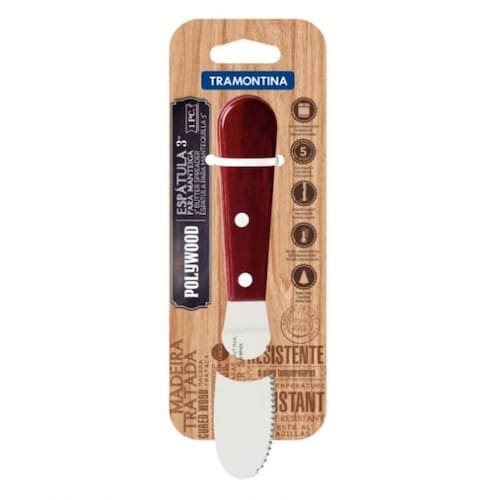 Espátula Tramontina 3 Polywood Inox Serrilhada Vermelha Talheresde qualidade deixam sua mesa muito mais convidativa. Um exemplo é alinha Polywood que, com seus cabos de madeira tratada, faz bonito emencontros mais informais. Recomendações de Uso: Antes do uso: Antes de utilizar o , remova as eventuais etiquetas e lave-o com água e de uso: Durante a lavagem use somente esponja macia, outros tipos de produtos, como palha de aço, poderão riscar ou prejudicar o brilho do aço inox. Enxágue bem a peça a fim de remover totalmente os resíduos dos produtos de limpeza, que por serem abrasivos, podem danificar o inox. Após a lavagem enxugue a peça, pois as substâncias químicas contidas na água poderão causar manchas. Sempre que possível use água quente, pois renova o brilho do talher. Evite o das peças com superfícies quentes, pois podem provocar a descoloração do produto. Quando usar a máquina de lavar louça, recomendamos retirar o talher logo que tenha terminado o ciclo enxaguar, a fim de que os mesmos sejam secados manualmente.- Tenha cuidado ao Manusear produtos cortantes e perfurantes e mantenha-os fora do alcance de crianças.- Foto meramente ilustrativa. Informações Adicionais: