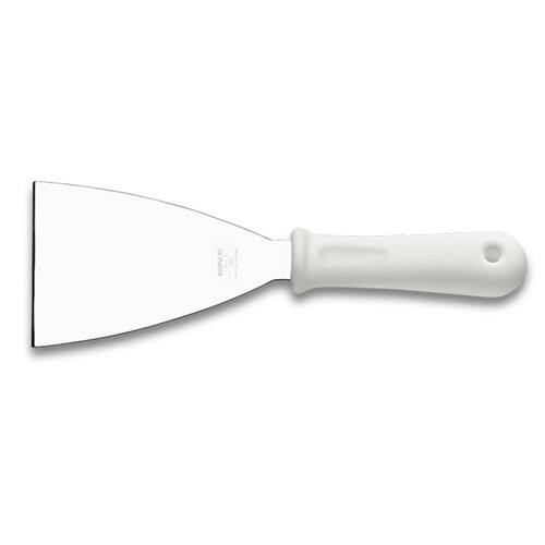 A espátula raspadora 10 cm é indicada para auxiliar no preparo de lanches, misto-quente, hot dog e muitos outros alimentos. Pode ser utilizada em lanchonetes, restaurantes, bares padarias etc. Essa espátula de cozinha tem a base plana e é ideal para manusear, cortar e servir alimentos preparados na chapa.