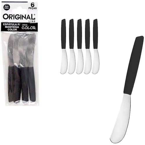 Informações adicionais: Ean: 7899751109840 Validade: indeterminada Tamanho aproximado da espatula: 14cm Tamanho aproximado da embalagem: a:21xl:7,5cm Peso aproximado: 90g Tipo de produto: espatula pate / color com 6 peças Cor: cabo preto Composição: inox e plastico Marca: Não Informado Ean: 7899751109840