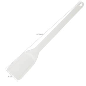 A espátula industrial branca da Cinquetti feita em plástico polipropileno, tem material resistente, durável e de fácil limpeza e manuseio, é utilizada para mexer alimentos em ambientes de produção de grande quantidade, como restaurantes, bares, hotéis, hospitais e refeitórios de escolas e empresas. A espátula branca de cozinha possui um cabo longo trazendo praticidade e segurança. Possui um orifício no cabo, permitido ser pendurada para melhor visualização e organização.
