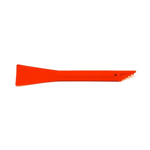 A espátula tem formato curvo especial para remover a sujeira e cabo com boa pegada para maior facilidade no uso.