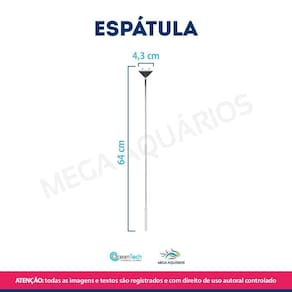 A espátula Oceantech é um instrumento fabricado com aço inoxidável de alta qualidade e desenhada para uma pegada firma e confortável, é um item indispensável para aquaristas e possui múltiplas aplicações no aquarismo.