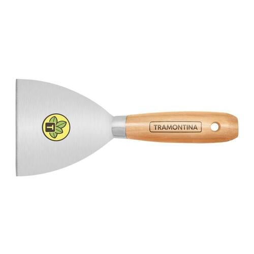 Espatula Rigida 10 Cm Tramontina Em Aço Carbono Com Cabo De Madeira Espátula Rígida 10 cm Tramontina em Aço Carbono com Cabo de Madeira A espátula rígida 10 cm Tramontina em aço carbono com cabo de madeira é indispensável na hora de construir ou reformar. É projetada para raspagem de resíduos e aplicação de gesso, massa corrida, rejunte e outros materiais. Além disso, auxilia você a fazer efeitos decorativas em texturas lisas ou granuladas. Possui lâmina de 10 centímetros produzida em aço carbono. Altamente durável e resistente, ela é uma ferramenta leve que torna o manuseio mais produtivo e menos cansativo. Apresenta ainda cabo em madeira de origem renovável e recebe acabamento envernizado, tornando a peça mais bonita e com um toque mais liso.