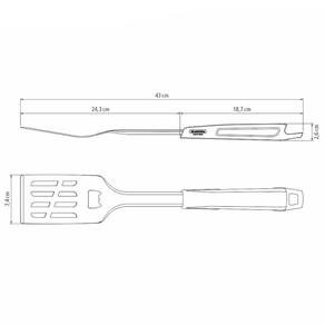 A espátula Tramontina Churrasco Black é essencial para preparar e manusear aquele hambúrguer delicioso e garantir um grelhado de primeira. De alta qualidade, é produzida com lâmina de aço inox e cabo de polipropileno com maior resistência e durabilidade. Para tornar sua experiência na churrasqueira ainda mais incrível esta espátula possui um abridor de garrafas, permitindo que você abra aquela cerveja geladinha enquanto prepara seu churrasco.
