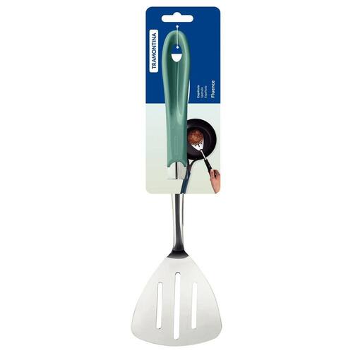 Espátula Tramontina Fluence com Lâmina em Aço Inox e Cabo em Polipropileno Menta A espátula Tramontina Fluence com lâmina em aço inox e cabo em polipropileno menta é a escolha ideal para preparar e servir suas refeições com muito mais cor e qualidade. Composta por lâmina em aço inox e cabo de polipropileno com furo passante, ela garante maior resistência e praticidade, pois pode ser levada à máquina de lavar louças e ser levada à máquina de lavar louças. Escolha Tramontina e transforme sua rotina na cozinha! Espátula com lâmina de aço inox que proporciona resistência durante o uso. Cabo de polipropileno com furo passante possibilitando que seja pendurado na sua cozinha. Pode ir à máquina de lavar louças facilitando seu dia a dia. Cuidados com o produto Antes da primeira utilização, lave bem a peça e seque-a. Para maior durabilidade do produto recomenda-se secar bem antes de guardar, mesmo após lavagem em máquina. Para descarte do produto e embalagem siga as orientações de reciclagem vigentes. Garantia 90 dias para vícios ou defeitos de fabricação.