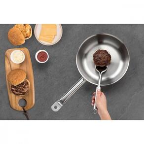 Totalmente feita de aço inox, por isso não solta nenhum resíduo nos alimentos, mantendo-os saudáveis. Altamente durável, mantém suas características , preservando a beleza, a higiene e a durabilidade do material. Pode ser lavada diariamente na máquina de lavar louças.
